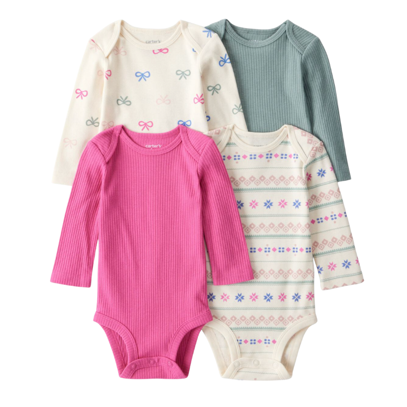 Set de 4 mamelucos de manga larga con estampado de lacitos