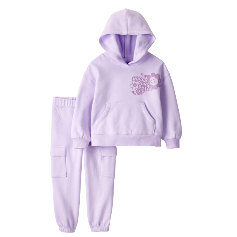 Conjunto de 2 piezas estilo buzo con gorro detalle happy days ahead